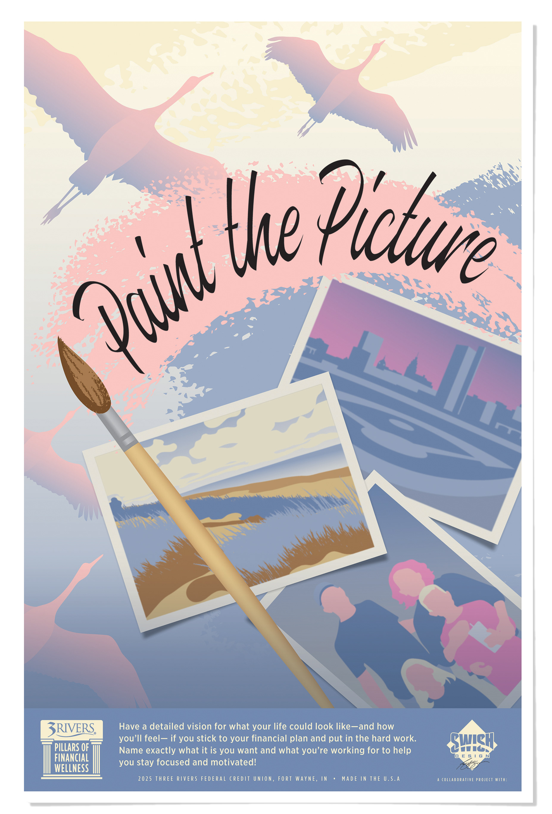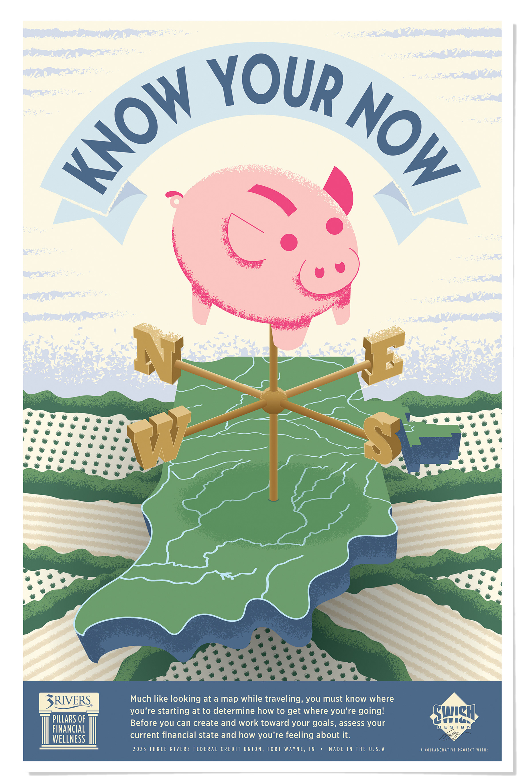 A series of posters for 3 Rivers Federal Credit Union, illustrating their four Pillars of Financial Wellness.