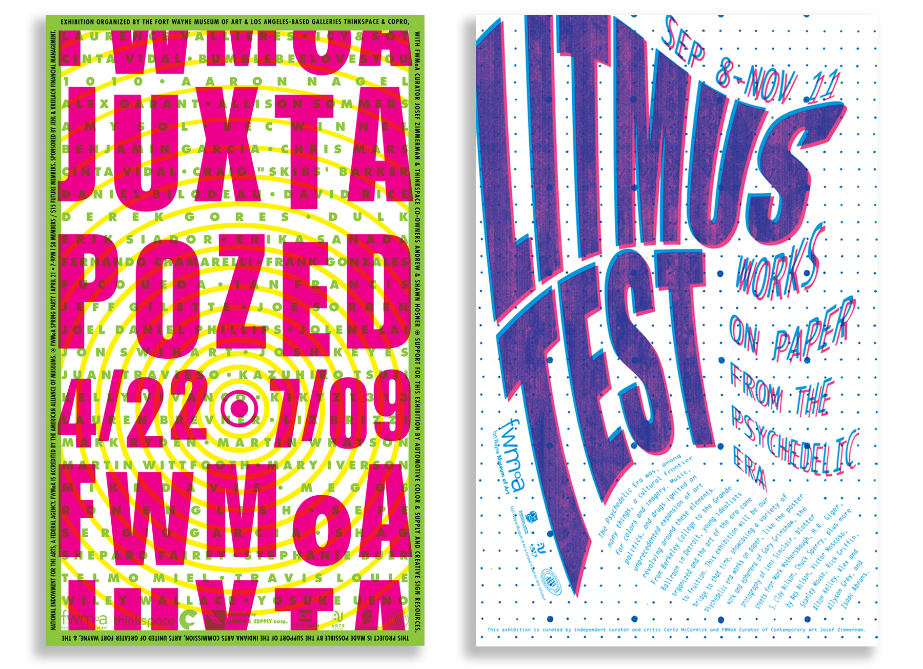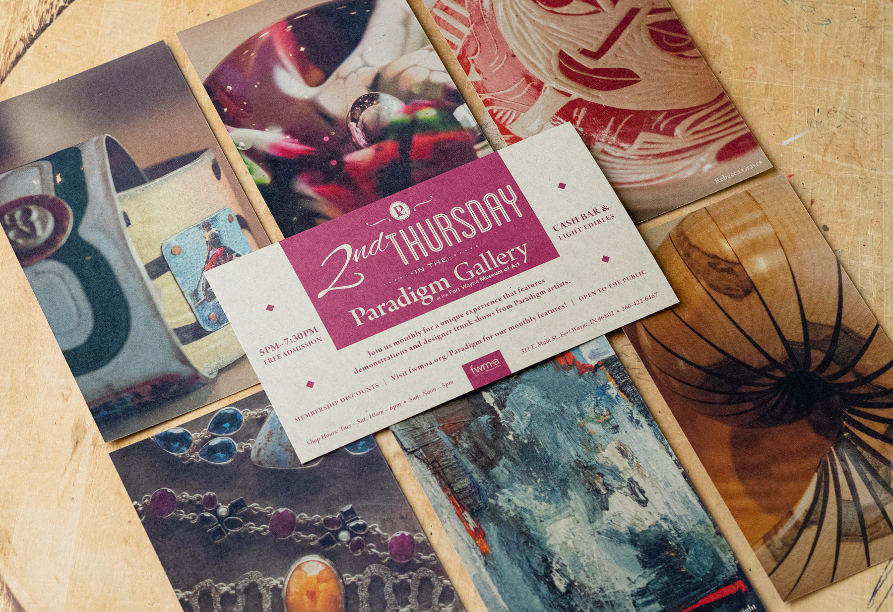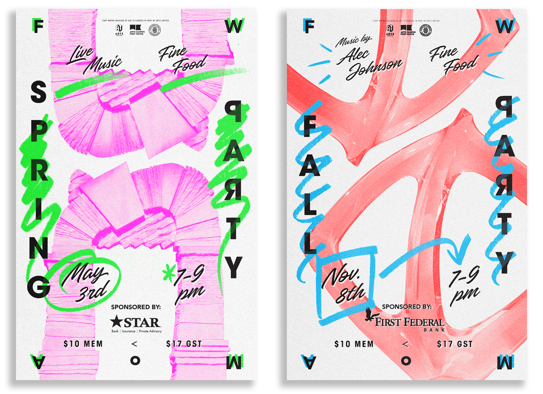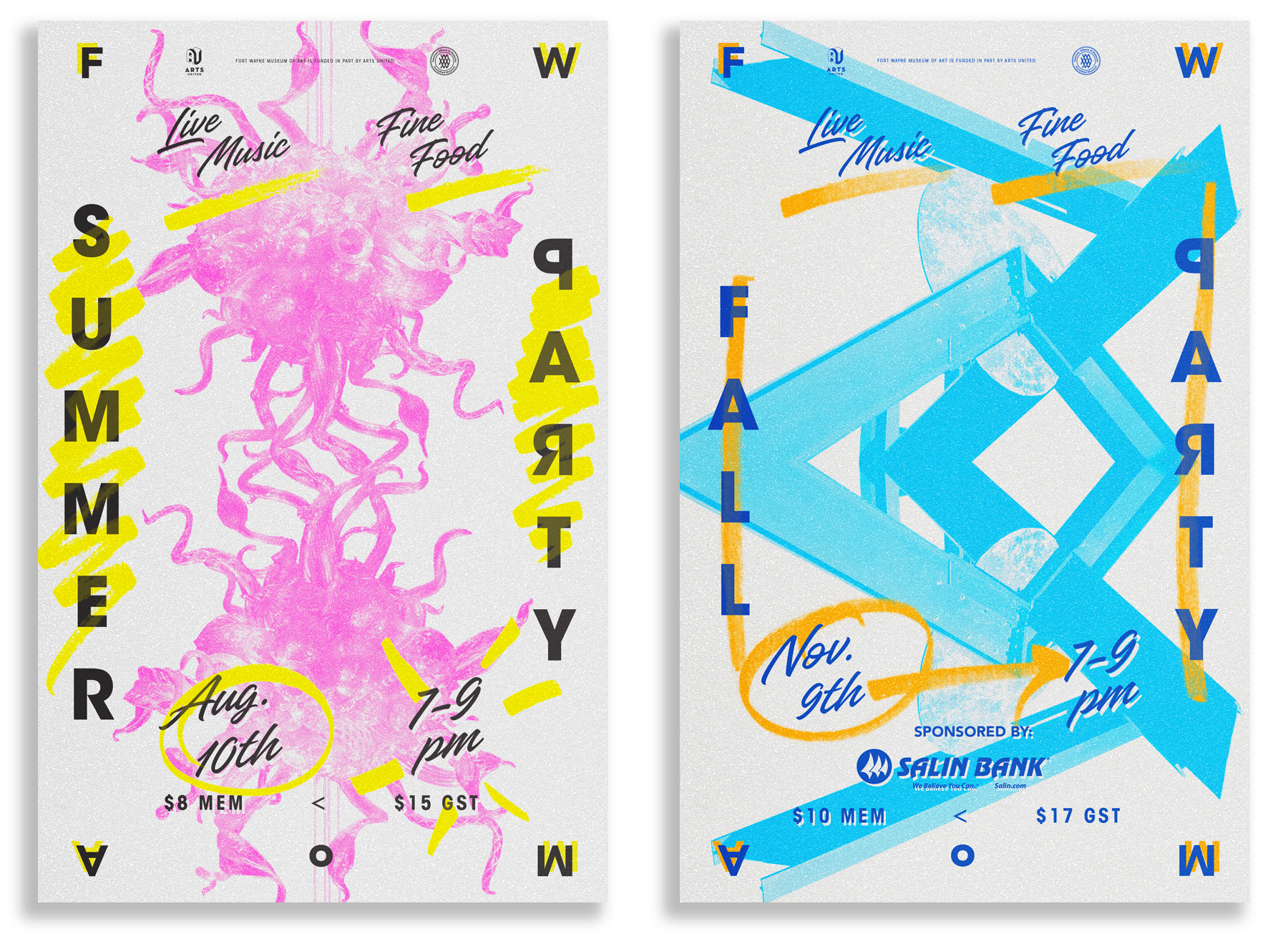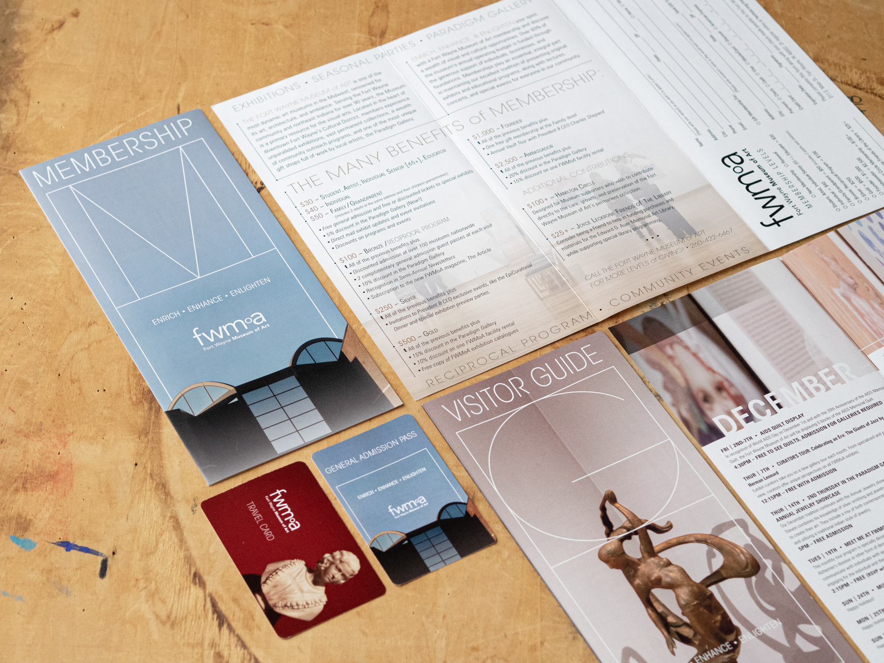 Various design and print projects for the Fort Wayne Museum of Art in Fort Wayne, IN.